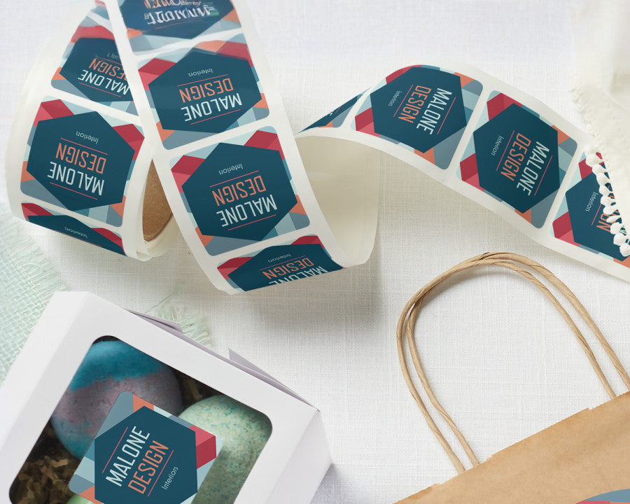 Etiketter kan vara runda, ovala, fyrkantiga, rektangulära eller konturskurna. Storlekarna varierar från 1 till 11 tum i bredd, med sex standardiserade rullstorlekar.